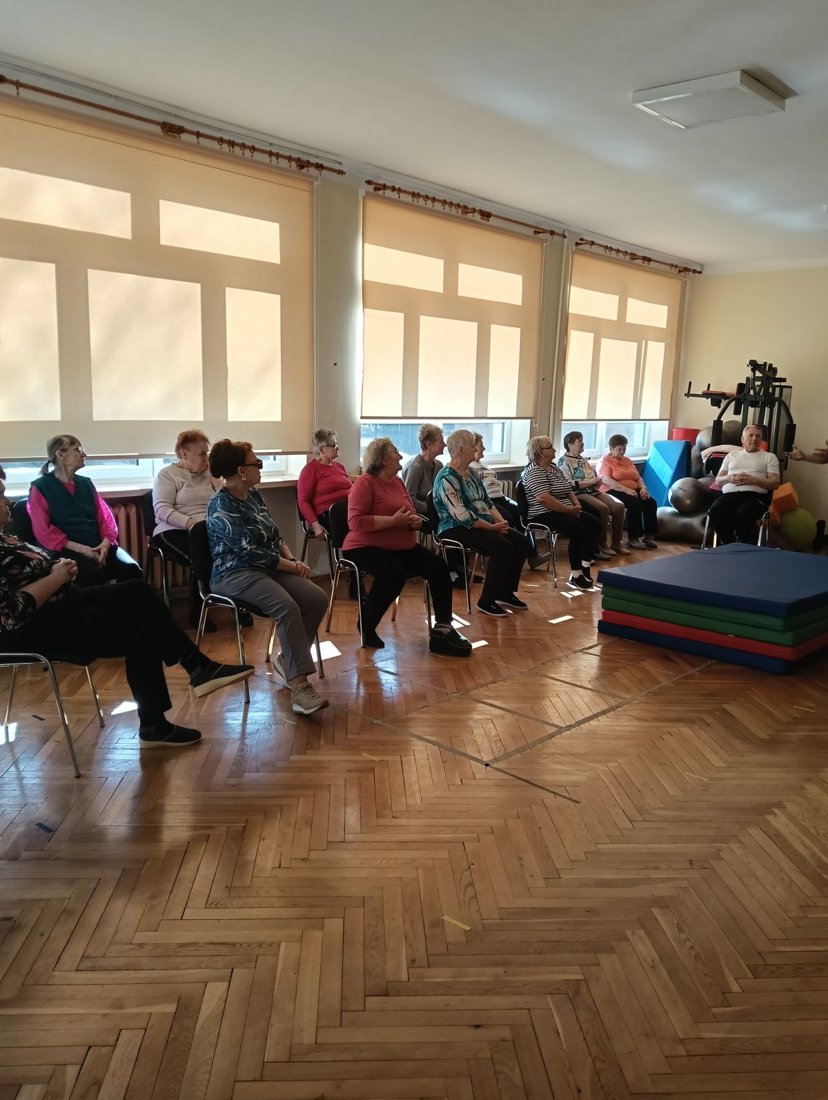 Dziś kolejne zajęcia ruchowe, grupowe. Systematyczne przeciwdziałamy występowaniu przykurczów w ciele, wszystko oczywiście dzięki regularnym ćwiczeniom.