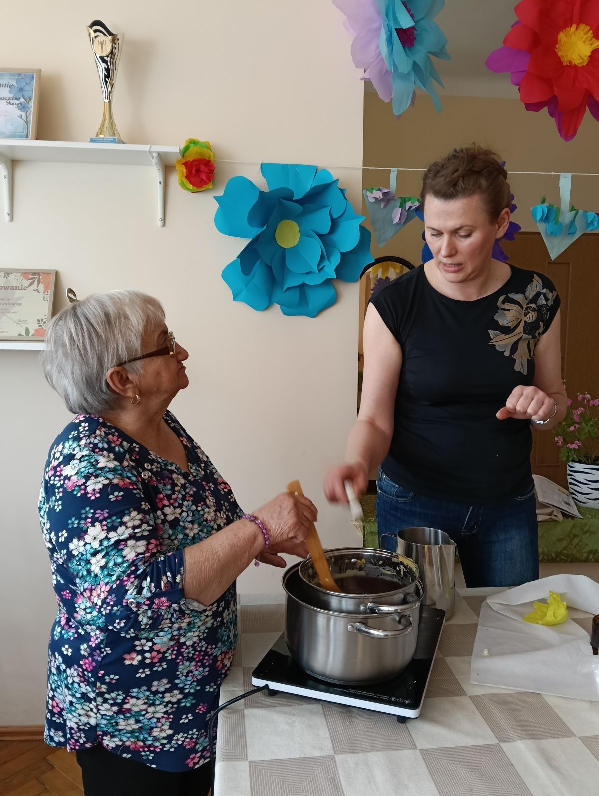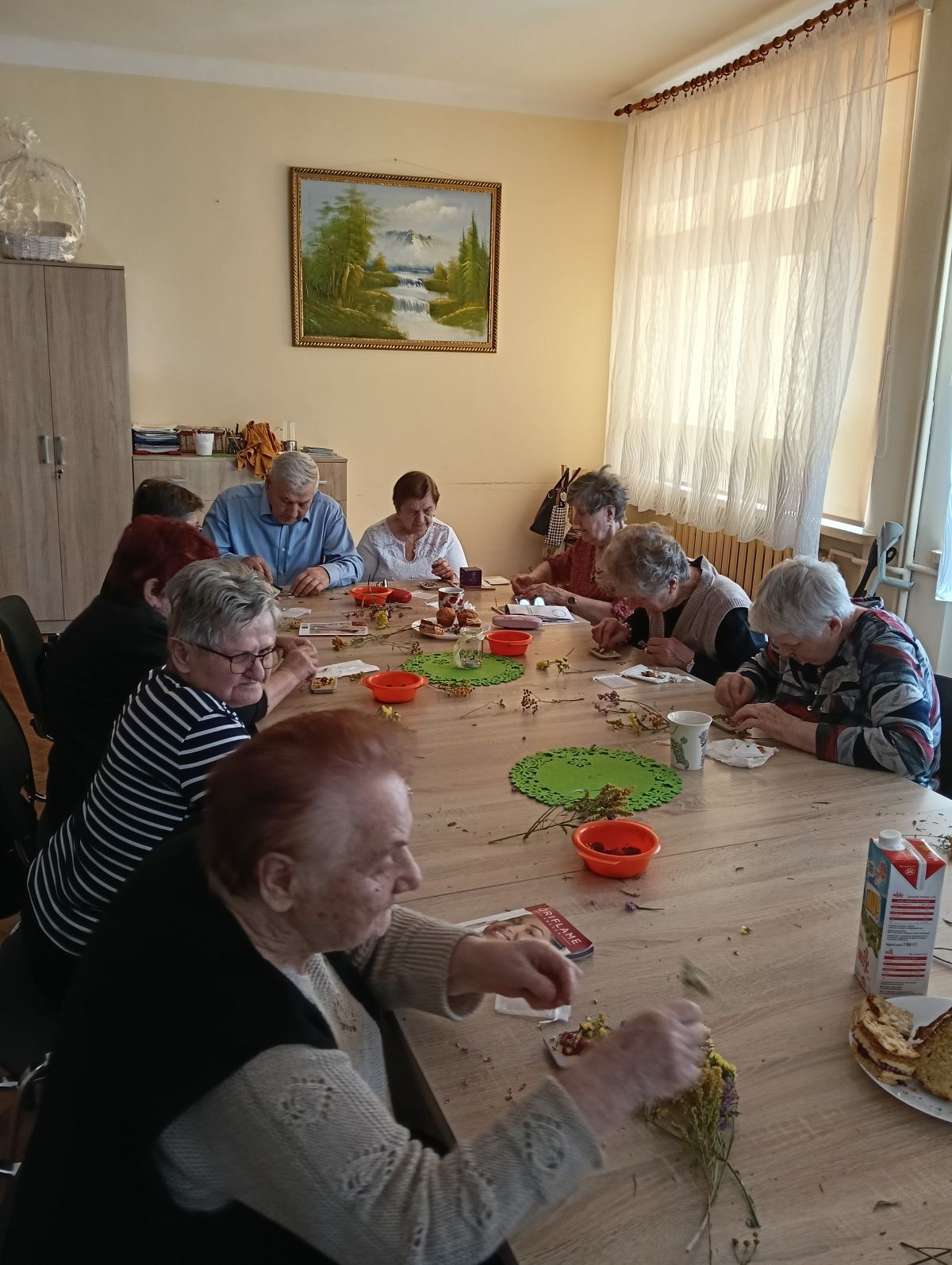 - zmieniamy wnętrze Klubu na bardziej wiosenne ( oczywiście kwiaty wykonała pani Ela 🌼).
