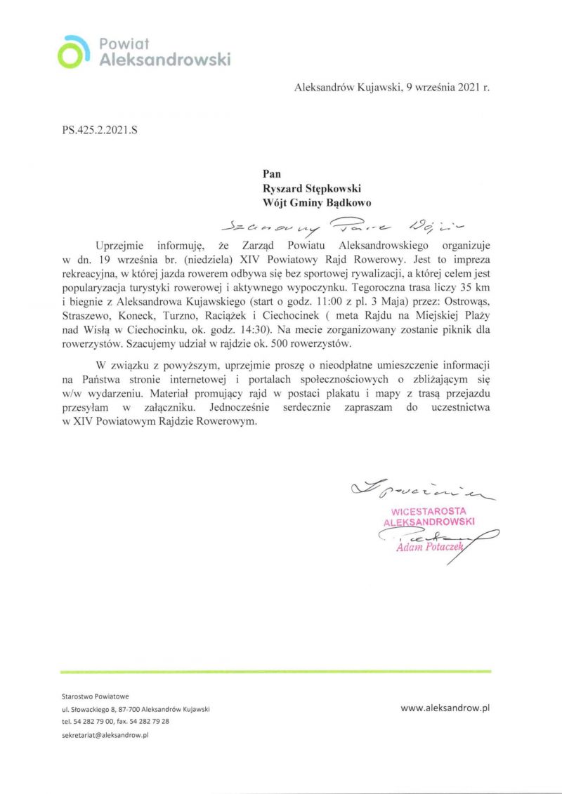 Administratorem danych osobowych jest Gmina Bądkowo, ul. Włocławska 82, 87-704 Bądkowo.