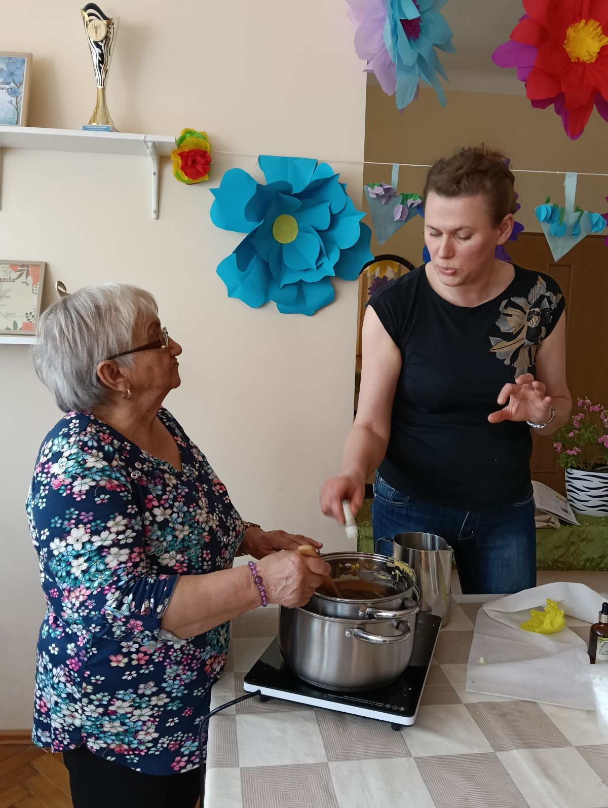 - zmieniamy wnętrze Klubu na bardziej wiosenne ( oczywiście kwiaty wykonała pani Ela 🌼).