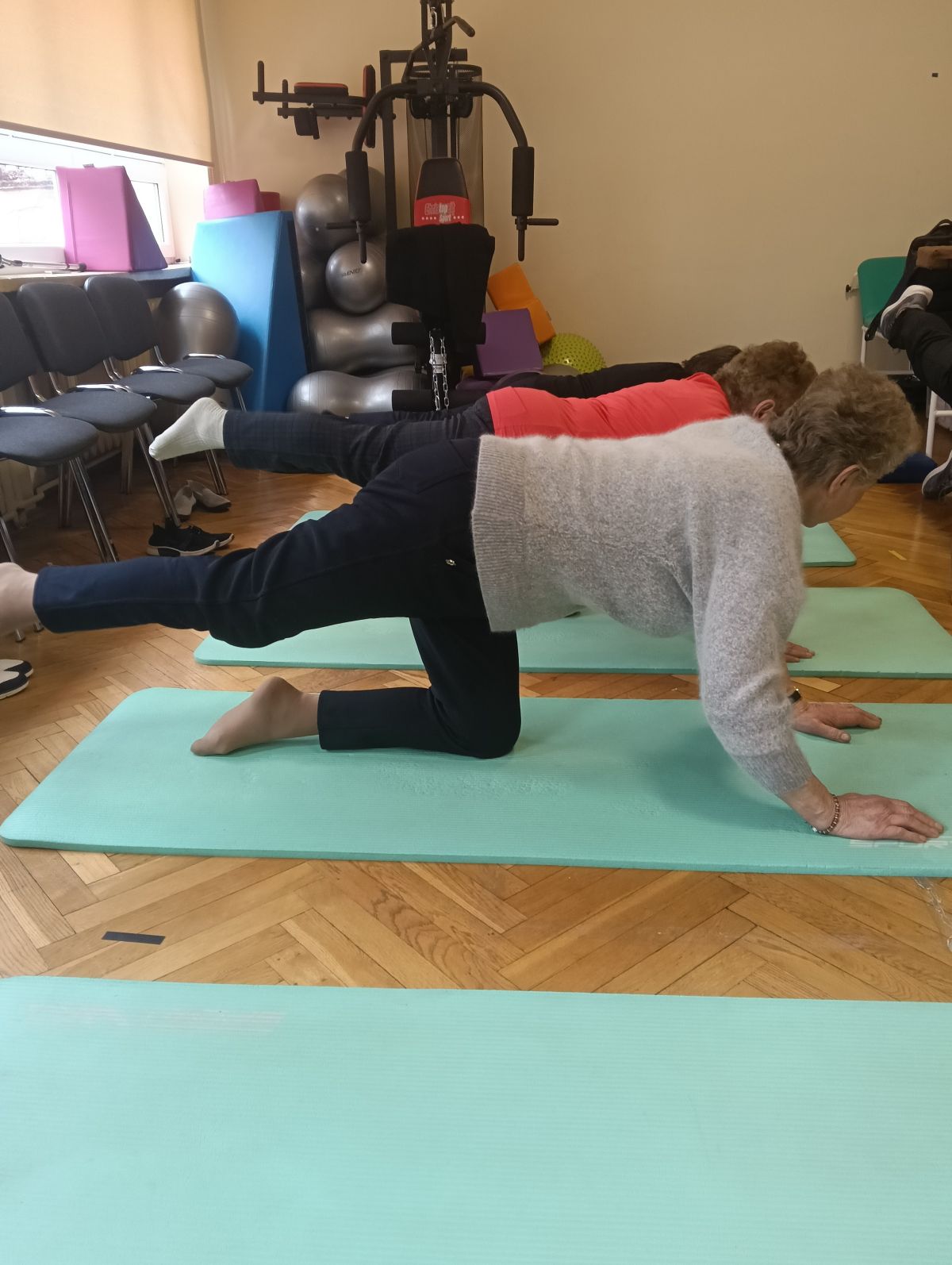 Dziś kolejne zajęcia ruchowe, grupowe. Systematyczne przeciwdziałamy występowaniu przykurczów w ciele, wszystko oczywiście dzięki regularnym ćwiczeniom.