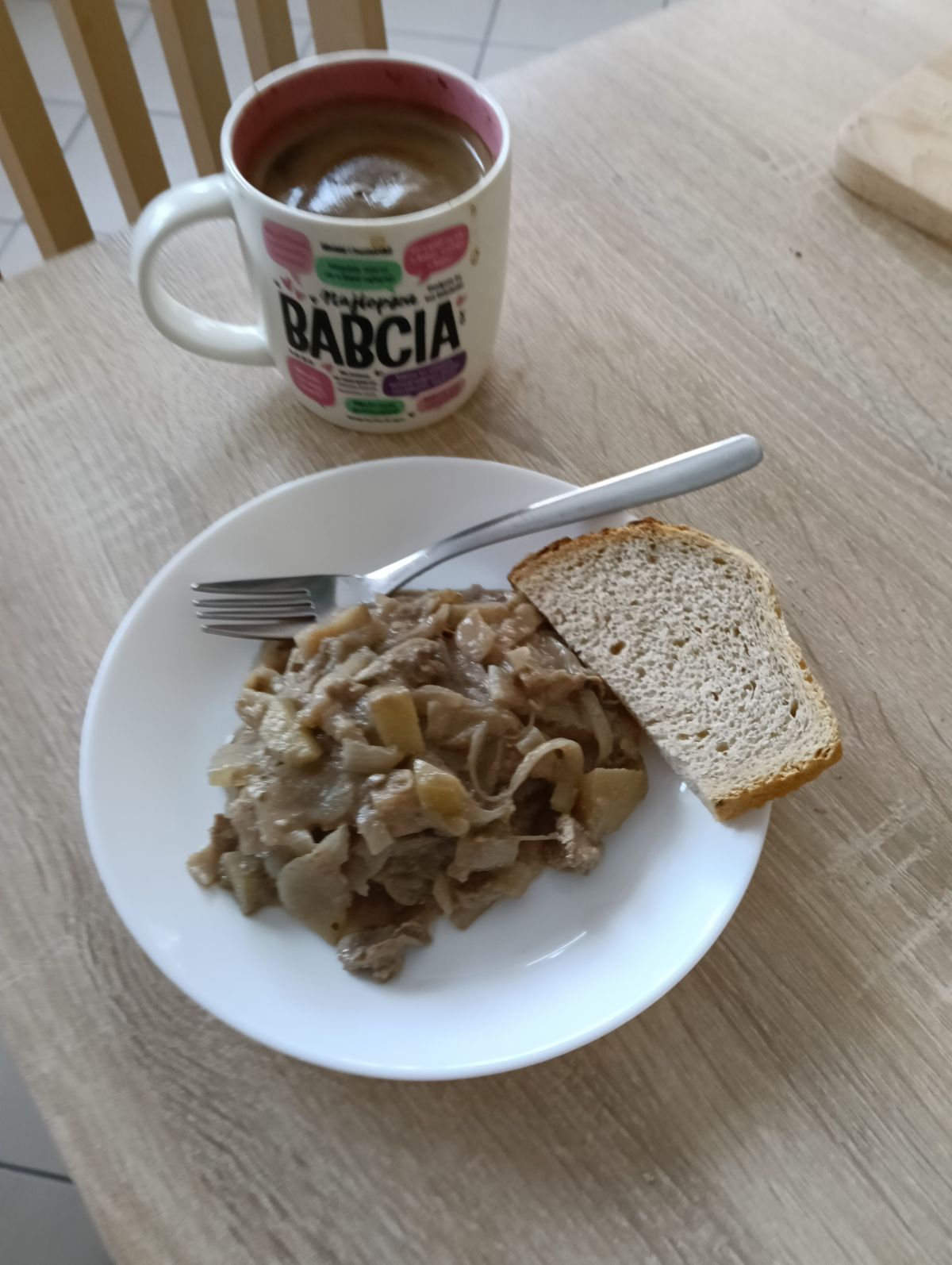 Potem był czas na smaczne jedzenie: pieczone udko, domowy chleb i przetwory (u nas buraczki i sałatka z kapusty). Oczywiście była też kawa i coś słodkiego.