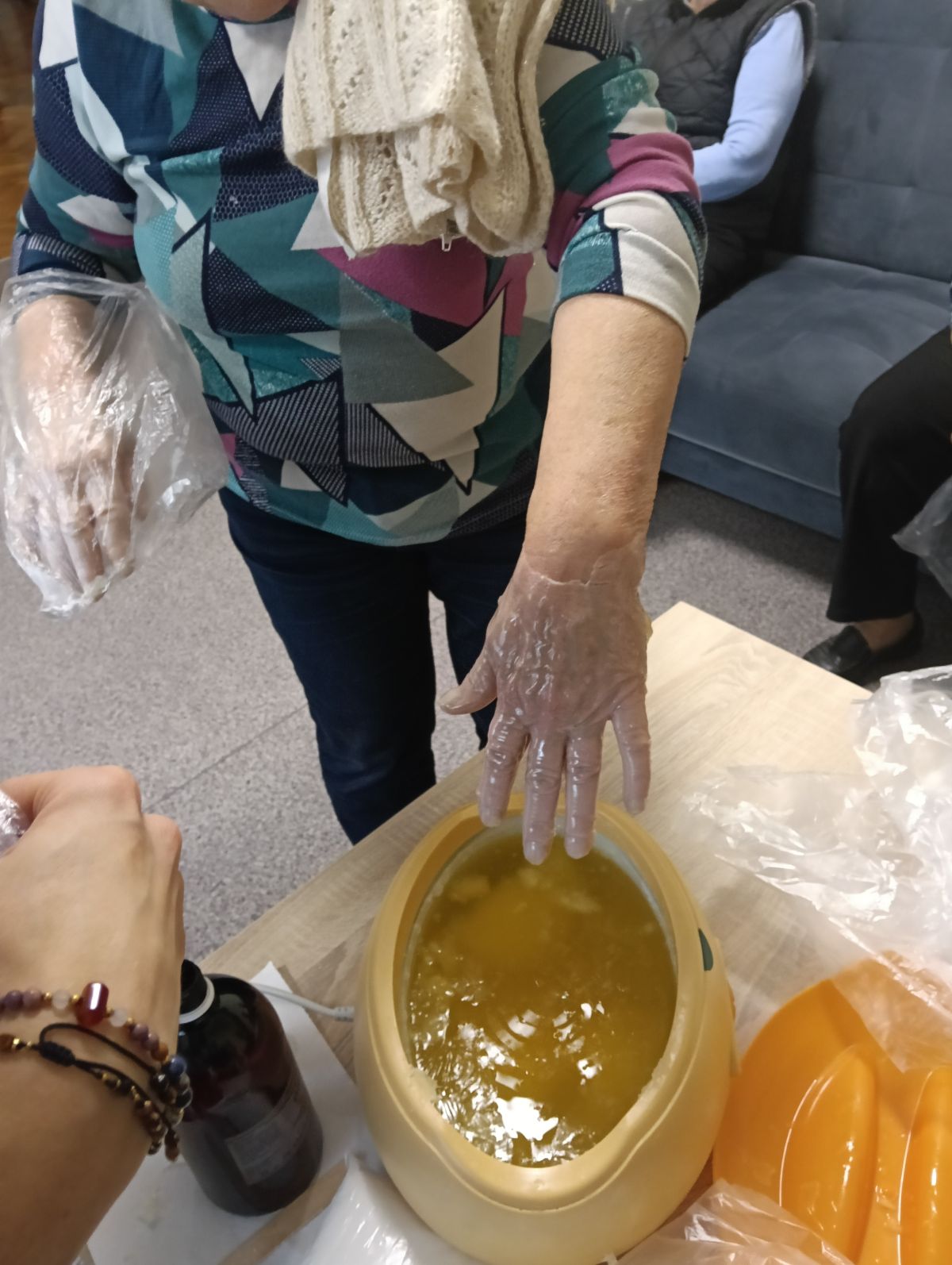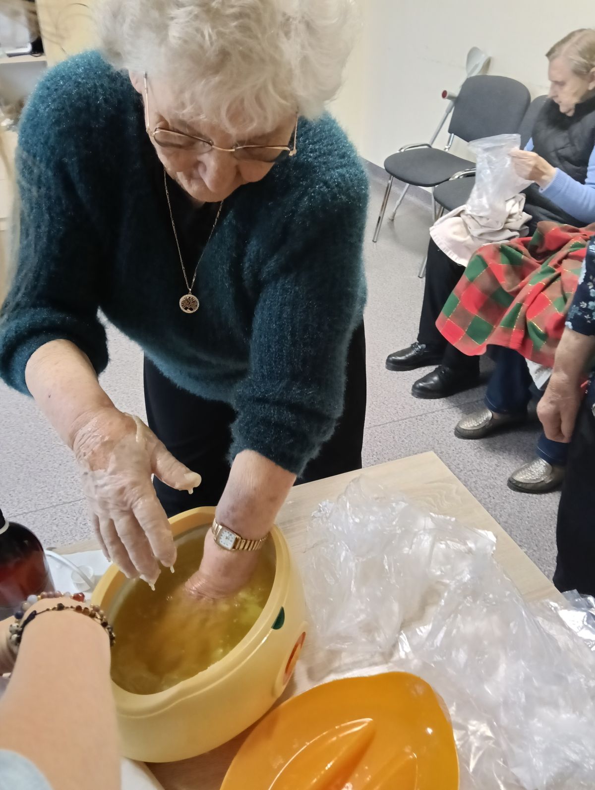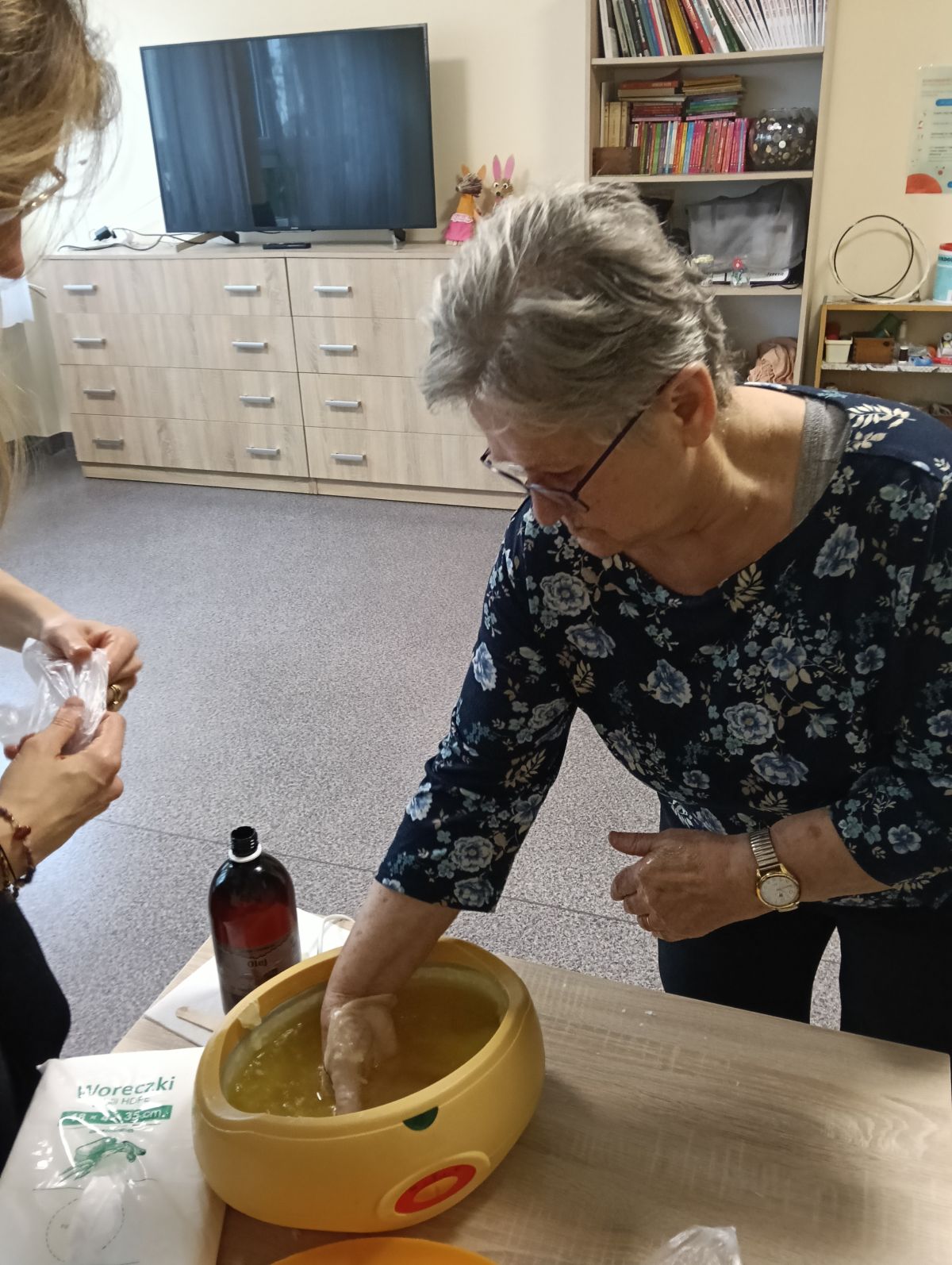 W tym tygodniu spotkaliśmy się również z kosmetologiem ( panie i panowie skorzystali z okładów parafinowych).