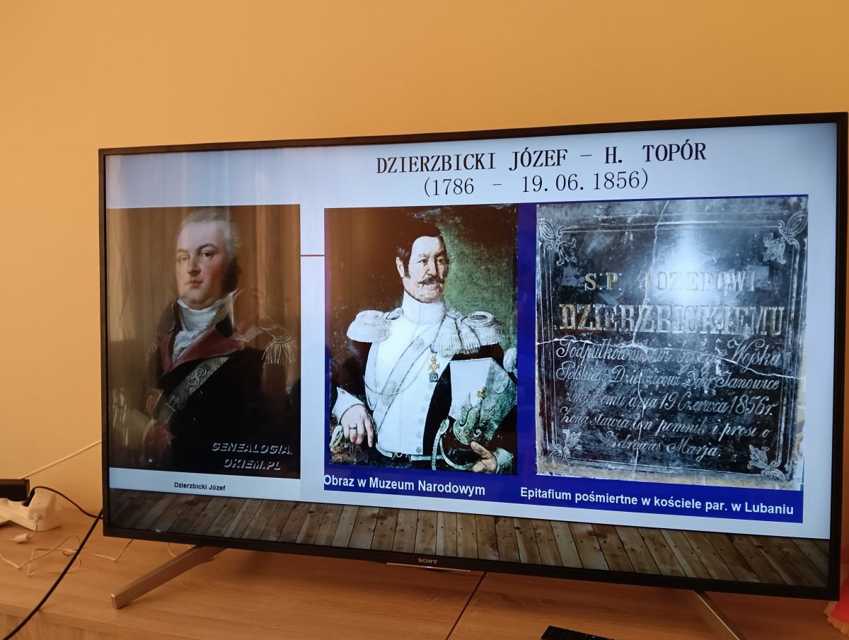 W środę kolejny raz gościliśmy pana Józefa Nowakowskiego, który na spotkanie przygotował specjalna prezentację zatytułowaną: 55 lat z dziejów Toporzyszczewa 1863 – 1918. Tytuł jest nawiązaniem do ostatniej książki , trzeciej części bądkowskiej monografii obejmującej ten okres czasu. Według unikalnych dokumentów archiwalnych i informacji wyszukanych w bibliotekach cyfrowych Toporzyszczewo z Dąbrówką, bo obydwie te wsie były w tych informacjach jako jeden duży majątek ziemiański. Aż do 1881 r. dobra te liczące ponad 1183 morgi należały do rodziny Dąbrowskich, później do kilku innych właścicieli, między innymi Zawadzkich i Ksawery Różycki. Na bądkowskim cmentarzu zachował się mocno uszkodzony grób Dąbrowskich. Tradycyjnie , prezentacji towarzyszyła ożywiona dyskusja – o miejscach i osobach w niej wspominanych – co nie było trudne, bowiem pan Józef zanim trafił do Bądkowa od 1979 r. mieszkał w Toporzyszczewie – jednym słowem „był u siebie”. Na zakończenie była niespodzianka – film dokumentalny o dziejach rodziny Kronenbergów i pałacu w Brzeziu – przygotowany przez wnuczki - Hanie i Marysię. Oczywiście już umówiliśmy się na kolejne spotkanie – mamy tylko zaproponować temat spotkania. A mamy ich mnóstwo. Dziękujemy za spotkanie!