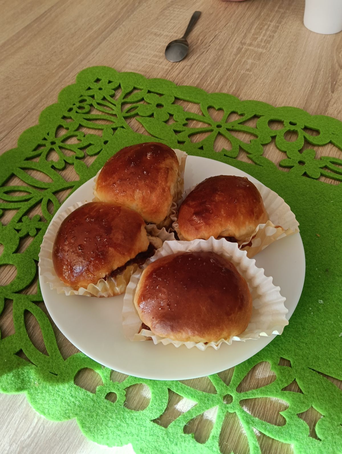 A w klubowej kuchni Pani Wiesia wyczarowała pyszne drożdżowe ciasto. Były też bułeczki z powidłami i kompot z jabłek.