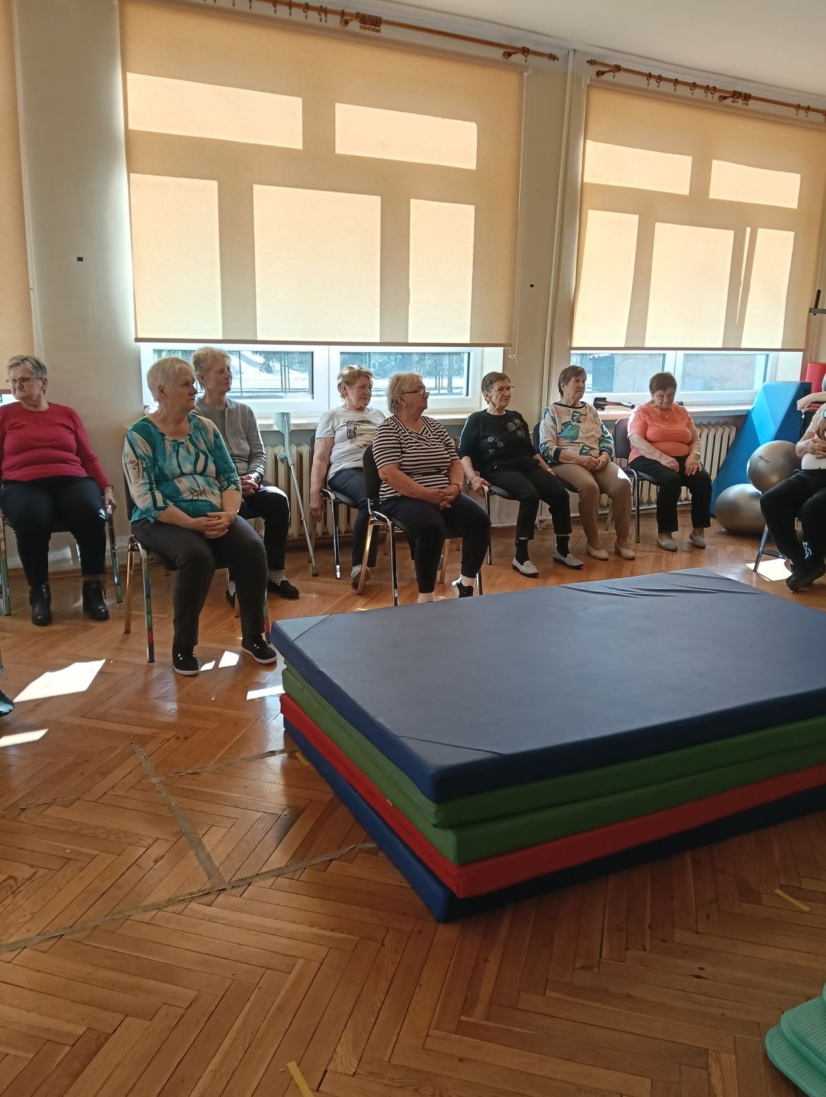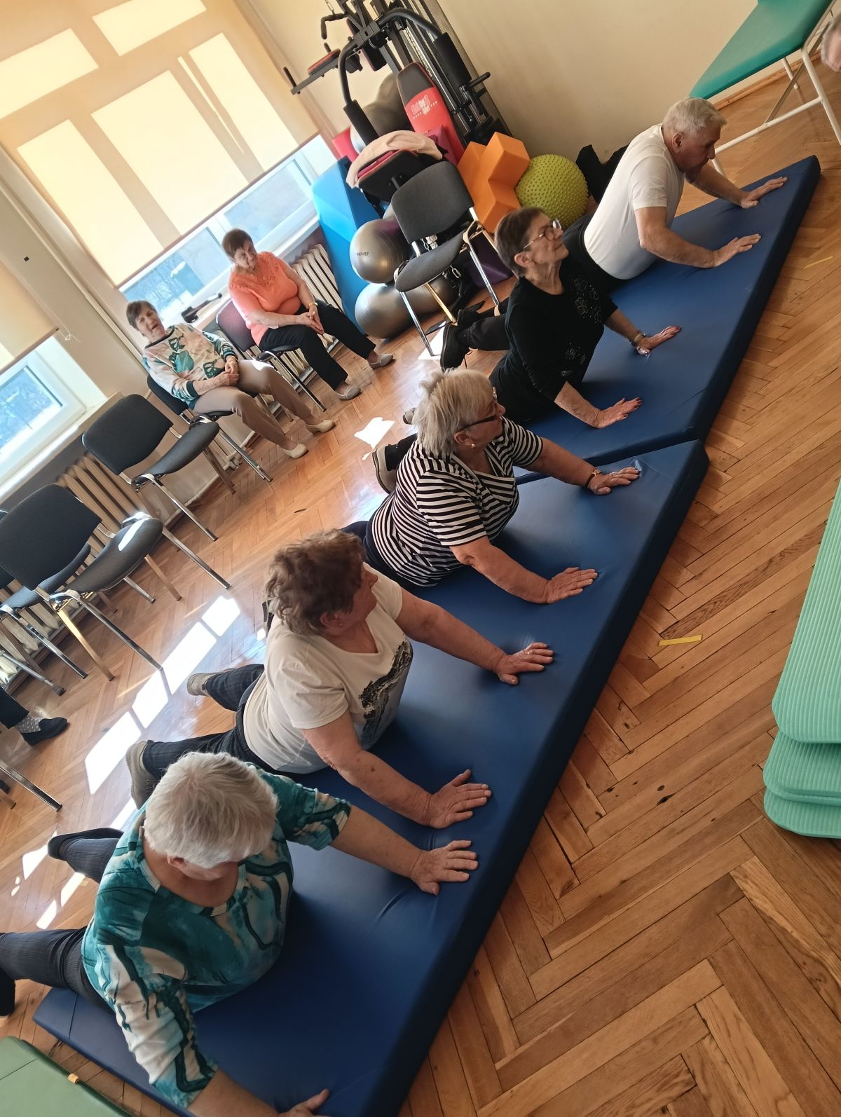 Dziś kolejne zajęcia ruchowe, grupowe. Systematyczne przeciwdziałamy występowaniu przykurczów w ciele, wszystko oczywiście dzięki regularnym ćwiczeniom.