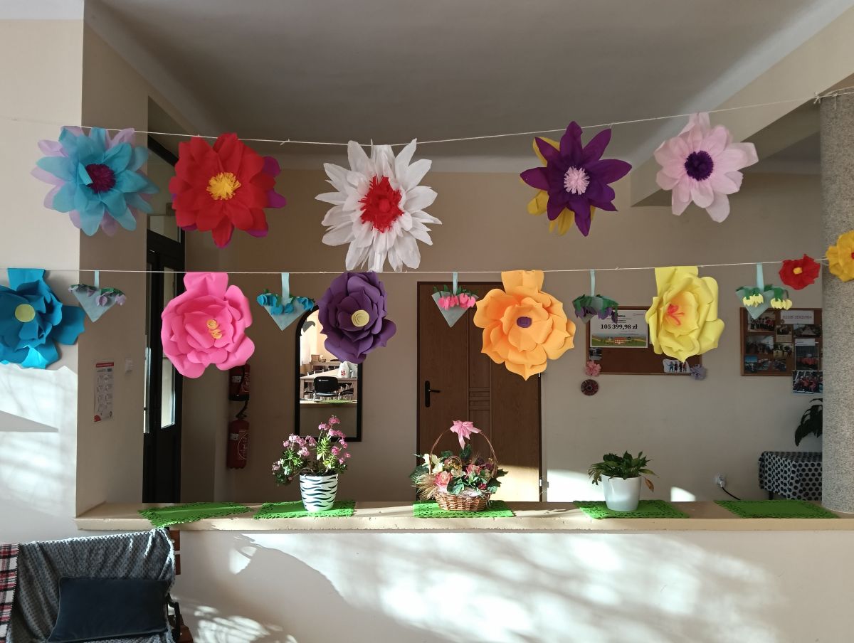 - zmieniamy wnętrze Klubu na bardziej wiosenne ( oczywiście kwiaty wykonała pani Ela 🌼).