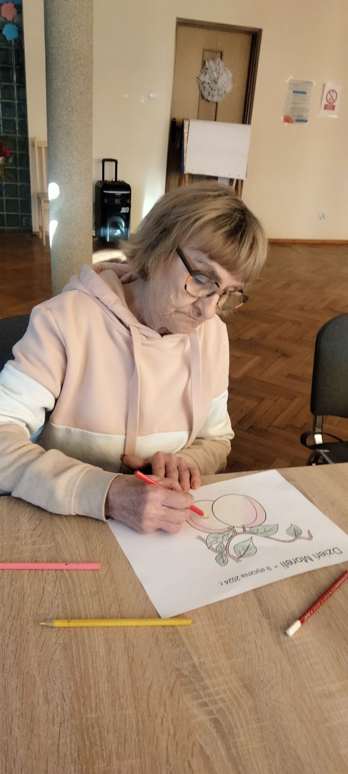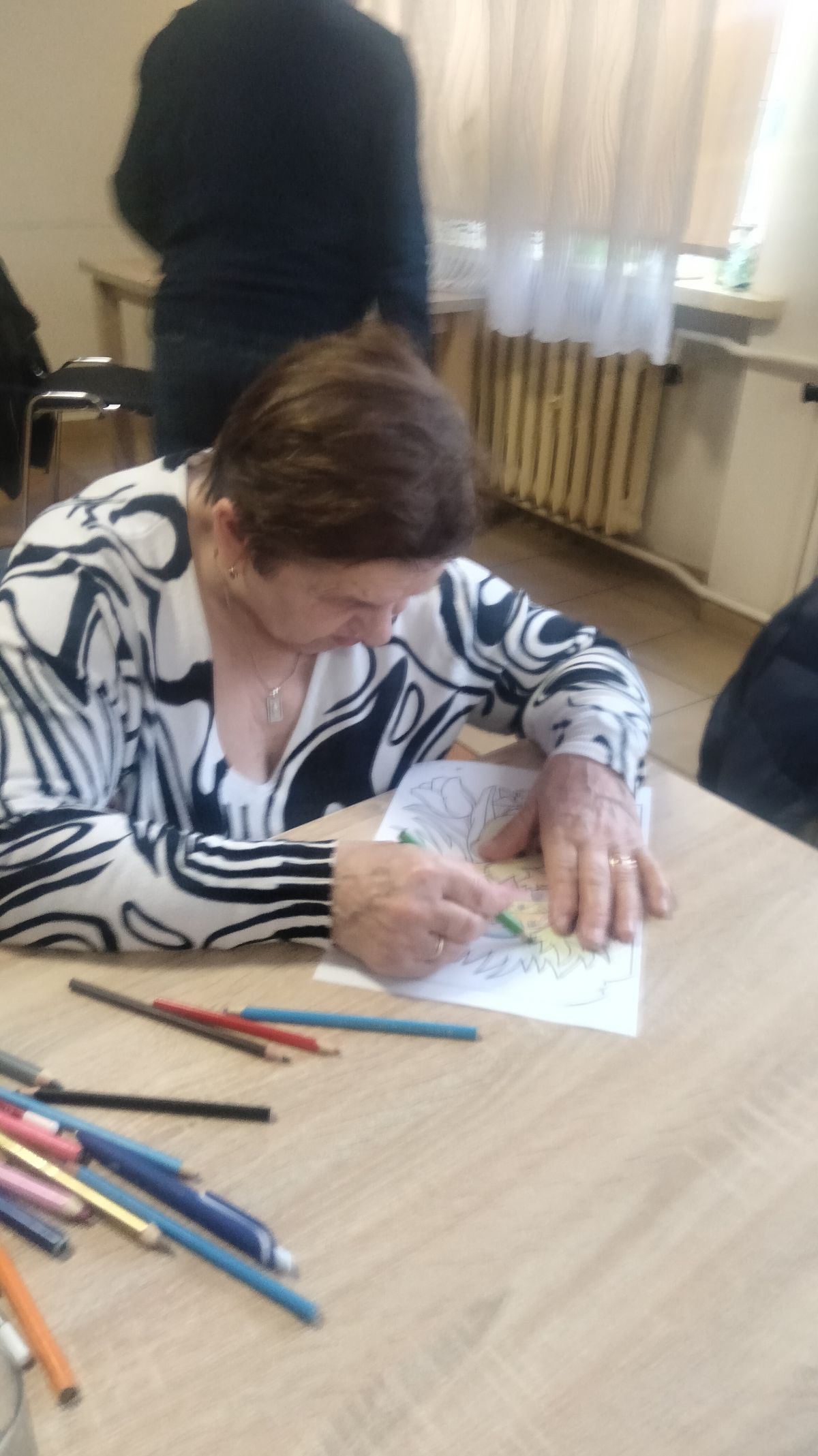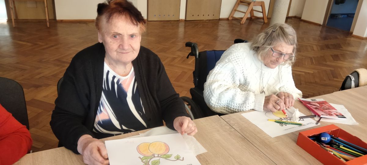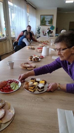Dzień dobry. Witamy się w Nowym Roku. W poniedziałek dzień rozpoczęliśmy od zajęć ruchowych, grupowych, po świętach trzeba się rozruszać! A potem miłe spotkanie z okazji minionych urodzin Pani Teresy. Dziękujemy za poczęstunek. Naszej Klubowiczce życzymy wszystkiego najlepszego, dużo zdrowia, szczęścia pomyślności i radości. We wtorek z okazji dnia moreli nasz czas wykorzystaliśmy na kolorowankę związaną z tym owocem. A potem zdrowy kisiel z owocami. W środę za sprawą Pana Adama i jego imienin bardzo miło spędziliśmy dzień. Był pyszny poczęstunek, doborowe towarzystwo i muzyka. Był taniec i zabawy. Panu Adamowi życzymy wszystkiego co najlepsze. Mnóstwa cudownych chwil i dużo zdrowia. A dziś kolejne zajęcia ruchowe, grupowe, a potem wspólne gry - kalambury.