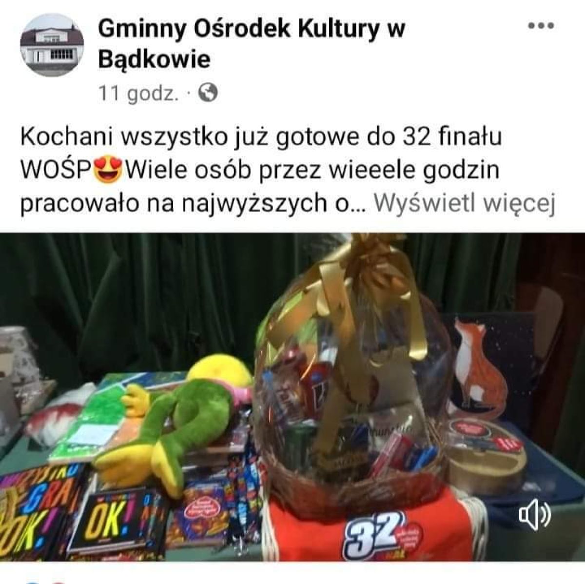 Wielka Orkiestra Świątecznej Pomocy 2024 r. My również dorzuciliśmy skromną cegiełkę. Zapraszamy do Bądkowa do licytacji.