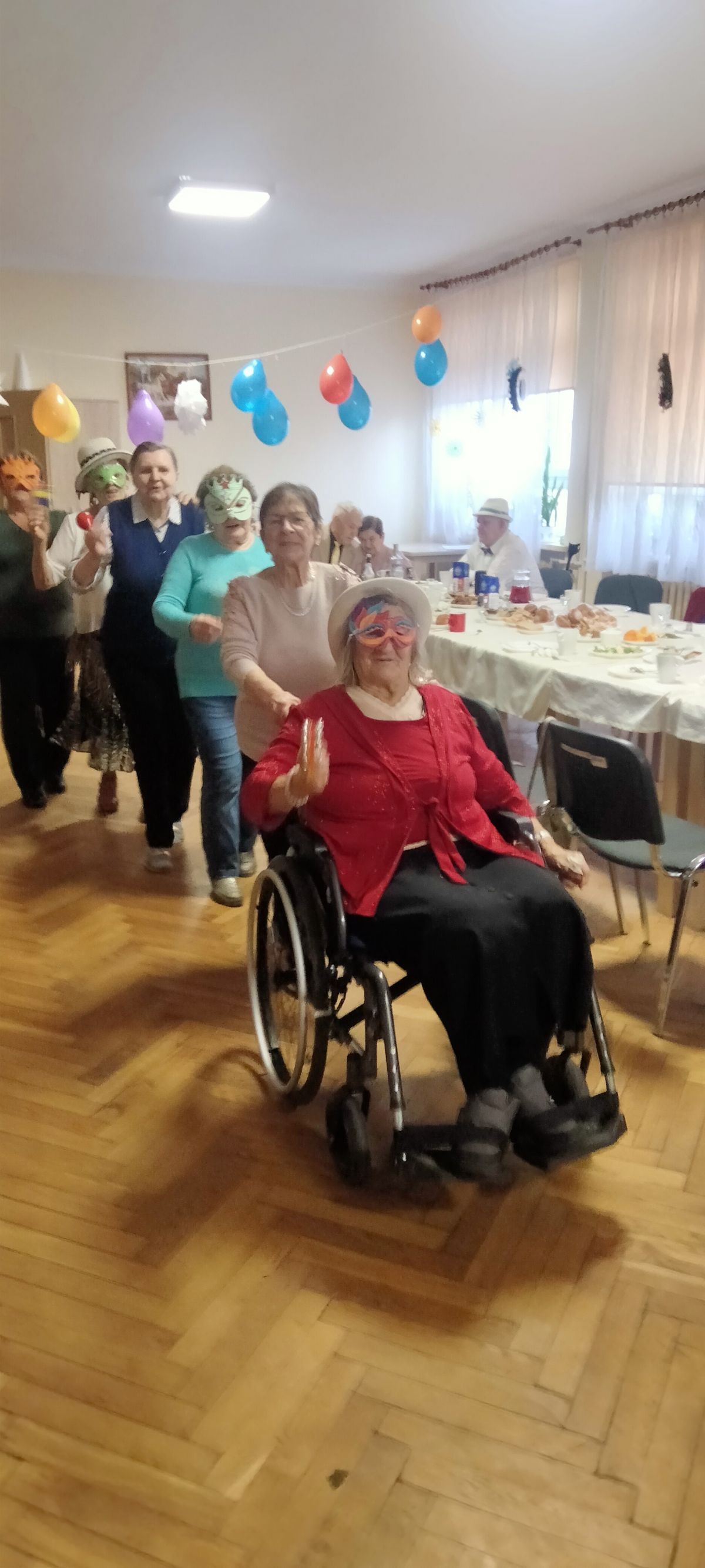 Karnawał trwa! Dlatego oprócz zajęć ruchowych, grupowych, które cieszą się ogromną sympatią i dbają o ciało zorganizowaliśmy imprezę. Pączki, faworki, ciasto zebra, udka, sałatki i kotlety mielone przygotowała klubowa kuchnia. Był też domowy chleb i przetwory. Oczywiście zadbaliśmy też o zabawy (wykorzystaliśmy maski, które robiliśmy). Muzyką zajął się pan Adam. Było to naprawdę udane spotkanie karnawałowe! Ponadto miło spędzamy czas kolorując i grając w gry.