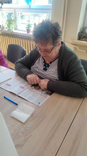 W tym tygodniu spotkaliśmy się z kosmetologiem. Troska o cerę ważna jest przecież w każdym wieku. Ponadto od nowego roku rozpoczęliśmy cykliczne zajęcia komputerowe. Przegląd prasy, przepisy, sprawy urzędowe bez wychodzenia z domu możemy załatwić wszystko. W związku z tym od nowego roku będziemy starać ,,zaprzyjaźnić się" z komputerami. Ponadto dziś uczciliśmy minione imieniny Pani Genowefy. Naszej wspaniałej ,,hrabinie" życzymy wszystkiego najlepszego, dużo zdrowia, szczęścia, pomyślności i radości. Dziękujemy za poczęstunek.  A w wolnych chwilach gramy w gry.
