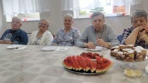 Każdy z soków był pyszny i zdrowy. Seniorzy z przyjemnością próbowali nowych smaków. Później wypiłyśmy kawę i zjedliśmy pyszne ciasto. Bardzo dziękujemy Panią z KGW Żabieniec za tak miły, pyszny i zdrowy dzień.