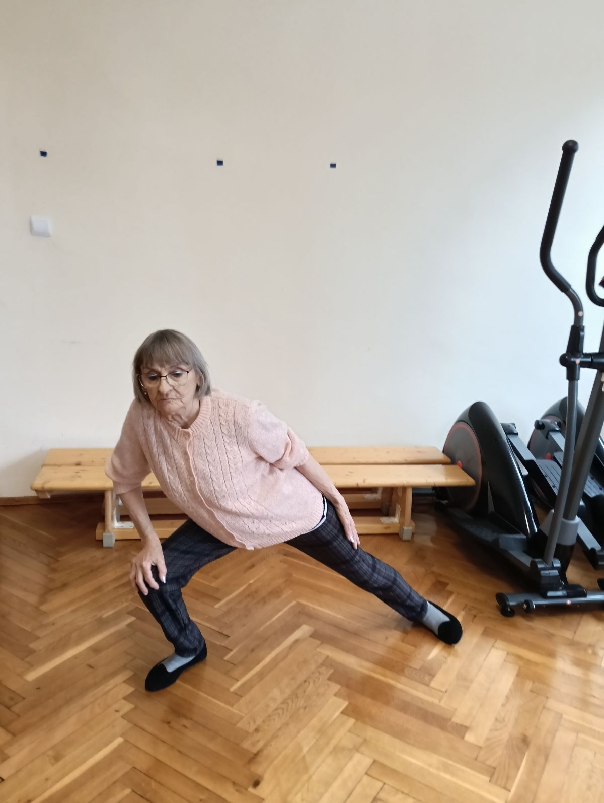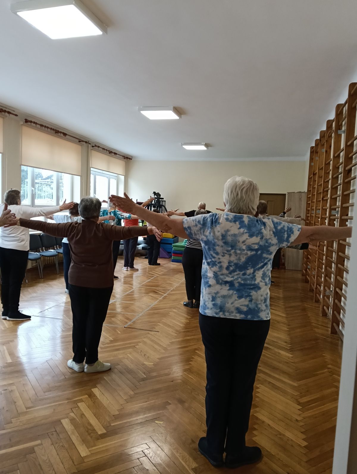 Dziś kolejne zajęcia ruchowe, grupowe. Systematyczne przeciwdziałamy występowaniu przykurczów w ciele, wszystko oczywiście dzięki regularnym ćwiczeniom.