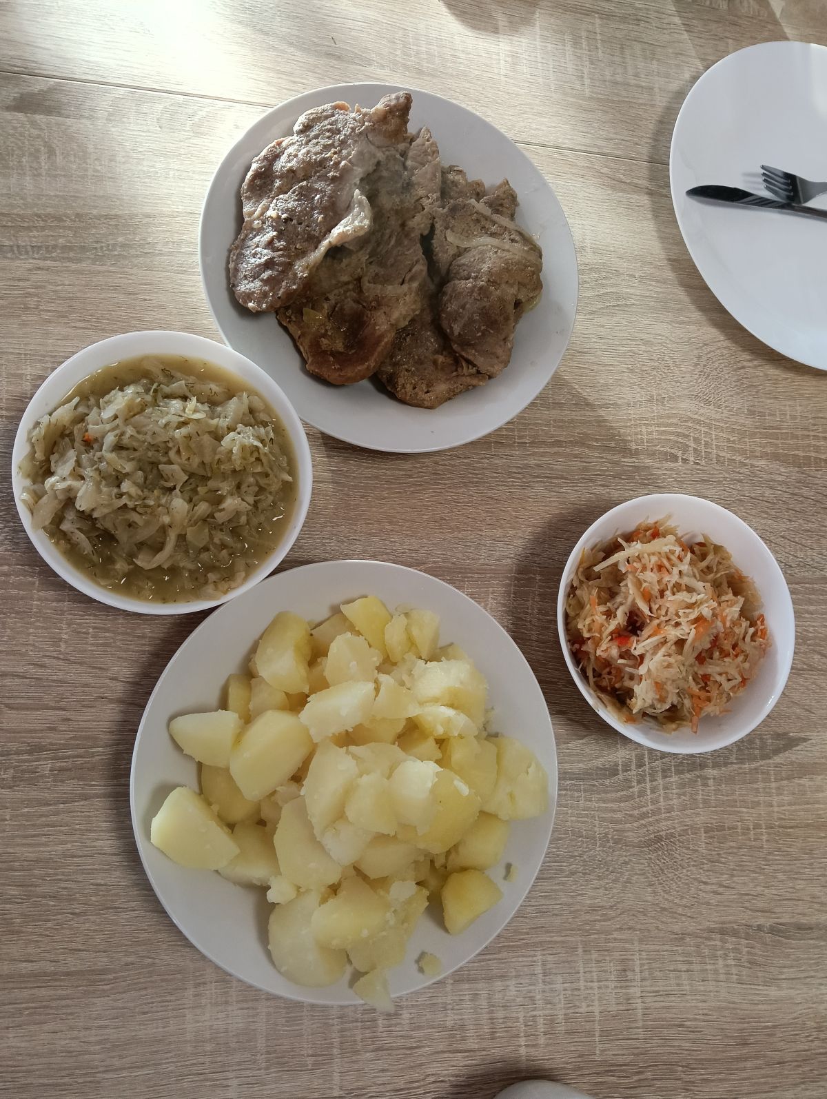 A na pyszny obiad- karkówka, ziemniaki surówka i kapusta z koperkiem.