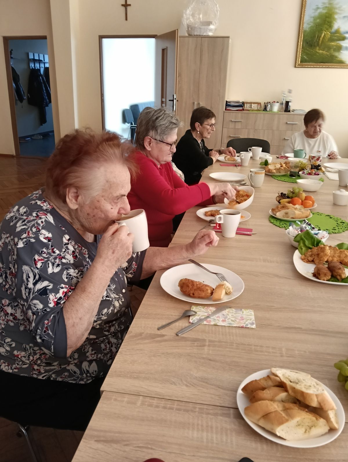 Potem był czas na smaczne jedzenie: pieczone udko, domowy chleb i przetwory (u nas buraczki i sałatka z kapusty). Oczywiście była też kawa i coś słodkiego.